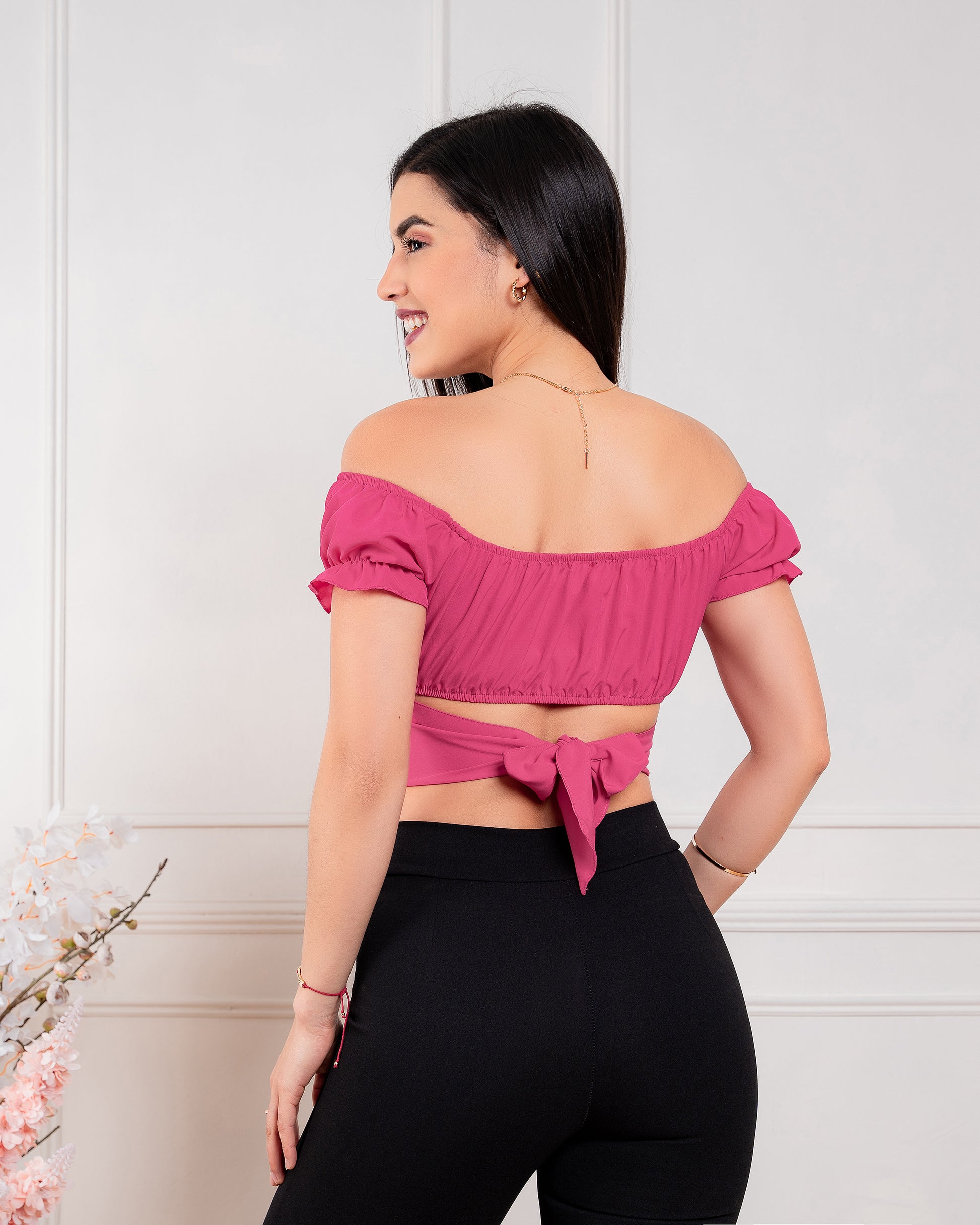 Detalles: Mangas corta, detalle de escote cruzado en el delantero.