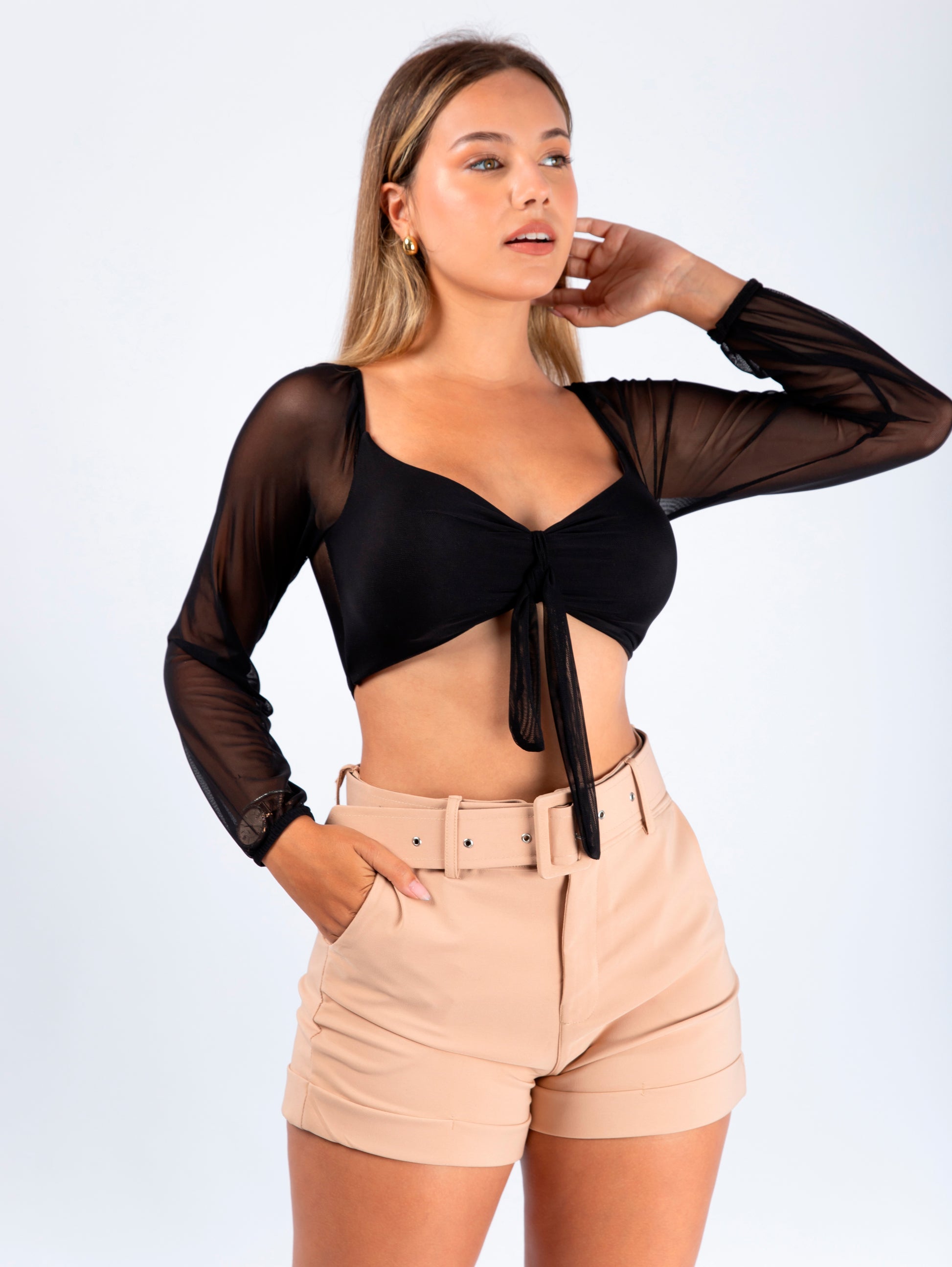 Detalles: Tiras con escote que se entrelazan para formar un lazo.